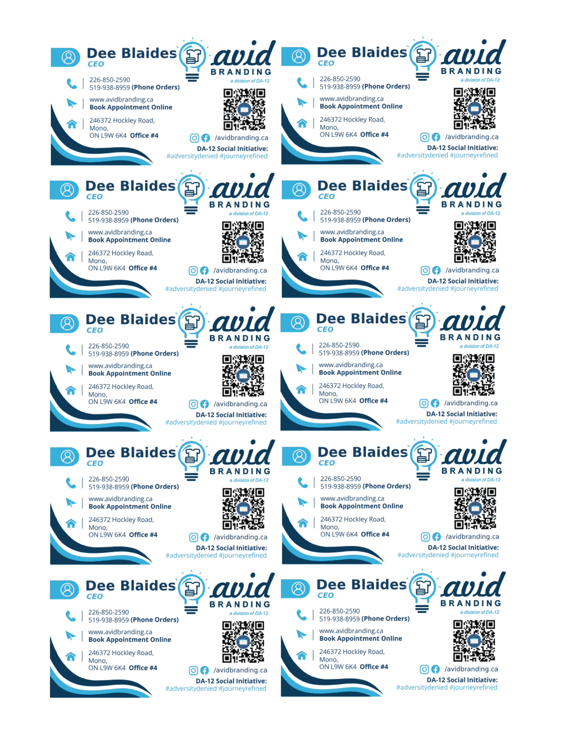 -Basic info (Name, #, Address, Email, Social, QR Codes)